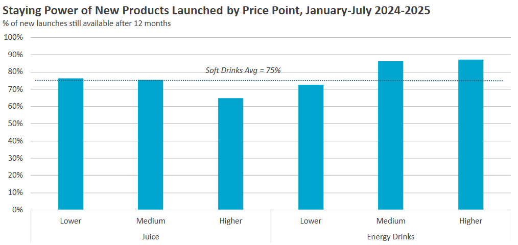 عبر مختلف الفئات، يلعب عامل السعر دورًا حاسمًا في تحديد ما إذا كانت المنتجات الجديدة ستنجح في البقاء بعد عامها الأول أم لا، فالعصائر تقدم مثالًا تحذيريًا واضحًا:
