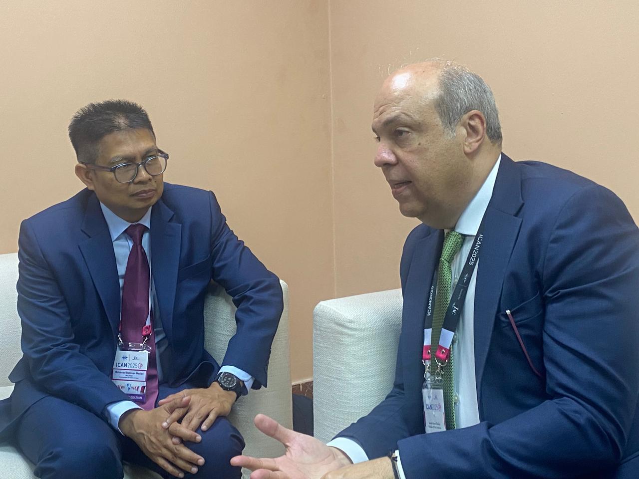 عقد الدكتور سامح الحفني، وزير الطيران المدني، سلسلة من اللقاءات الثنائية مع وزراء ورؤساء هيئات الطيران المدني من مختلف الدول المشاركة في فعاليات مؤتمر المنظمة الدولية للطيران المدني ICAN 2025، الذي يُعقد في مدينة بونتا كانا بجمهورية الدومينيكان.