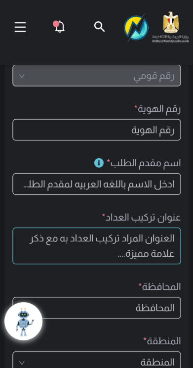 اختيار التقديم على تركيب عداد كهرباء كودي لأول مرة