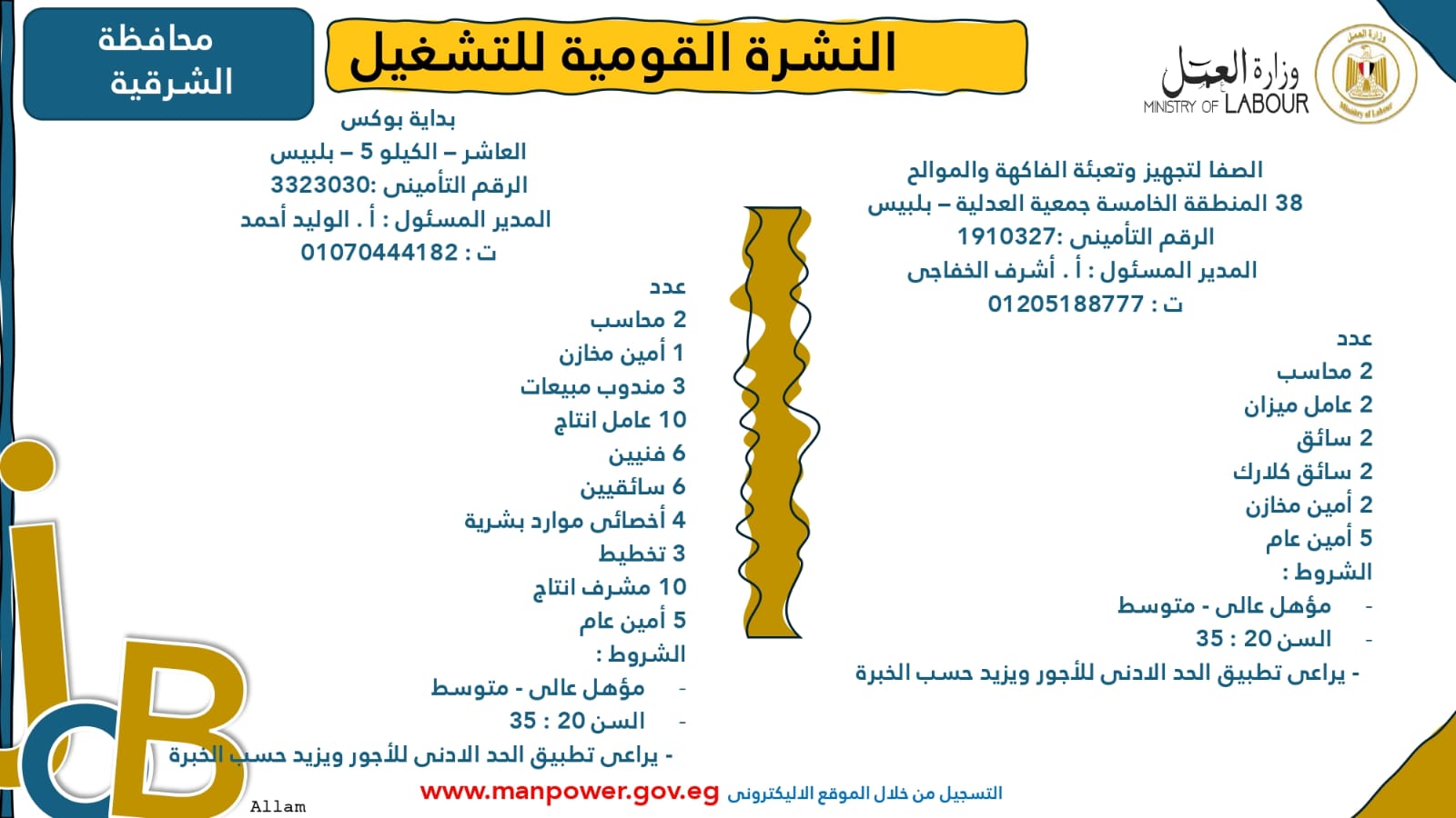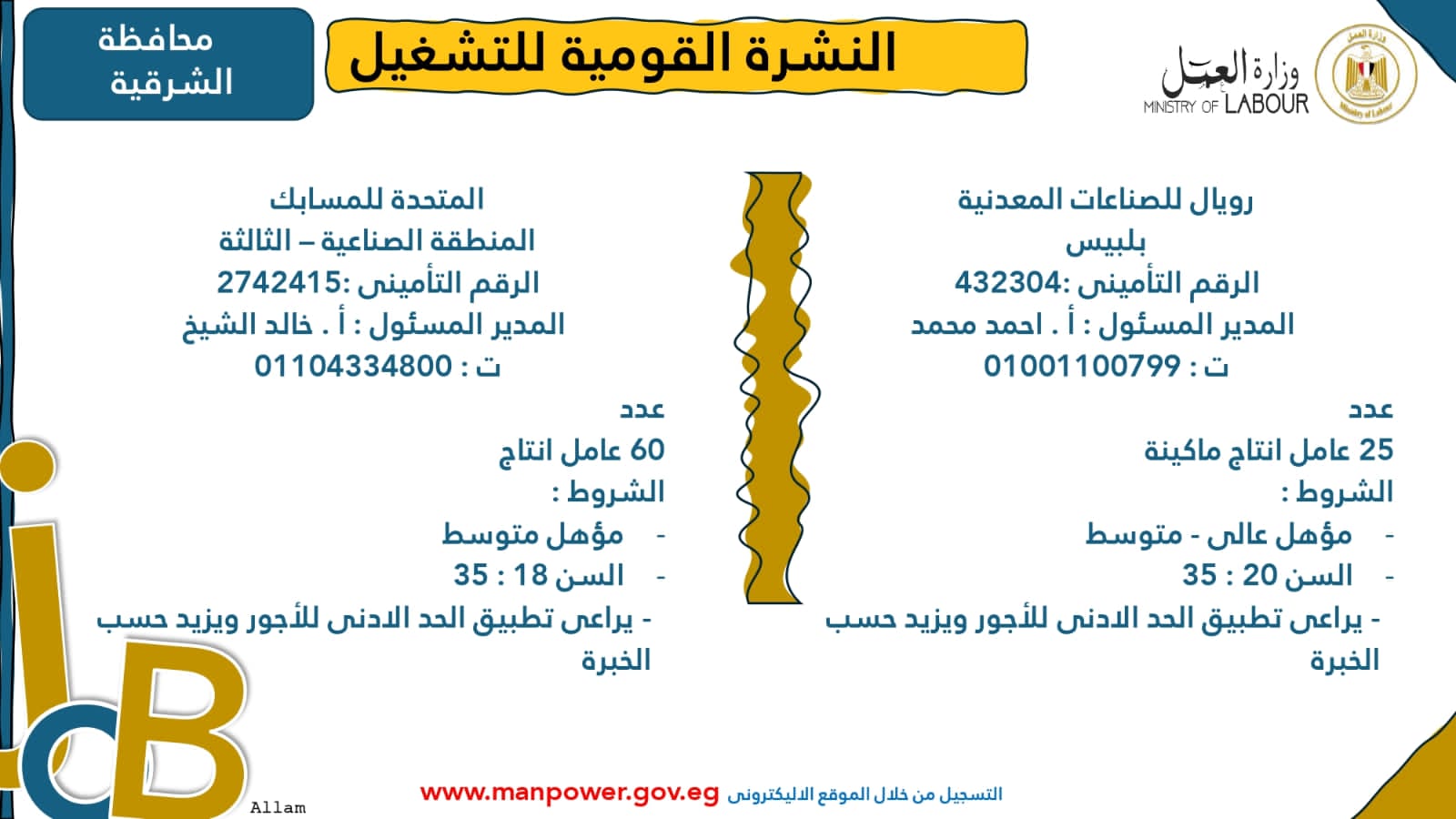 وأوضحت الوزارة في بيانها أن 53 شركة من القطاع الخاص في 14 محافظة أبدت استعدادها لتوفير 4202 فرصة عمل جديدة في عدد من التخصصات والمهن المختلفة، منها فرص مخصصة لأصحاب القدرات الخاصة (ذوي الهمم)، برواتب مجزية تُحدد وفقًا لطبيعة المقابلة الشخصية، مع الالتزام الكامل بتطبيق الحد الأدنى للأجور، فضلًا عن الاستفادة من منظومة التأمين الصحي والاجتماعي.