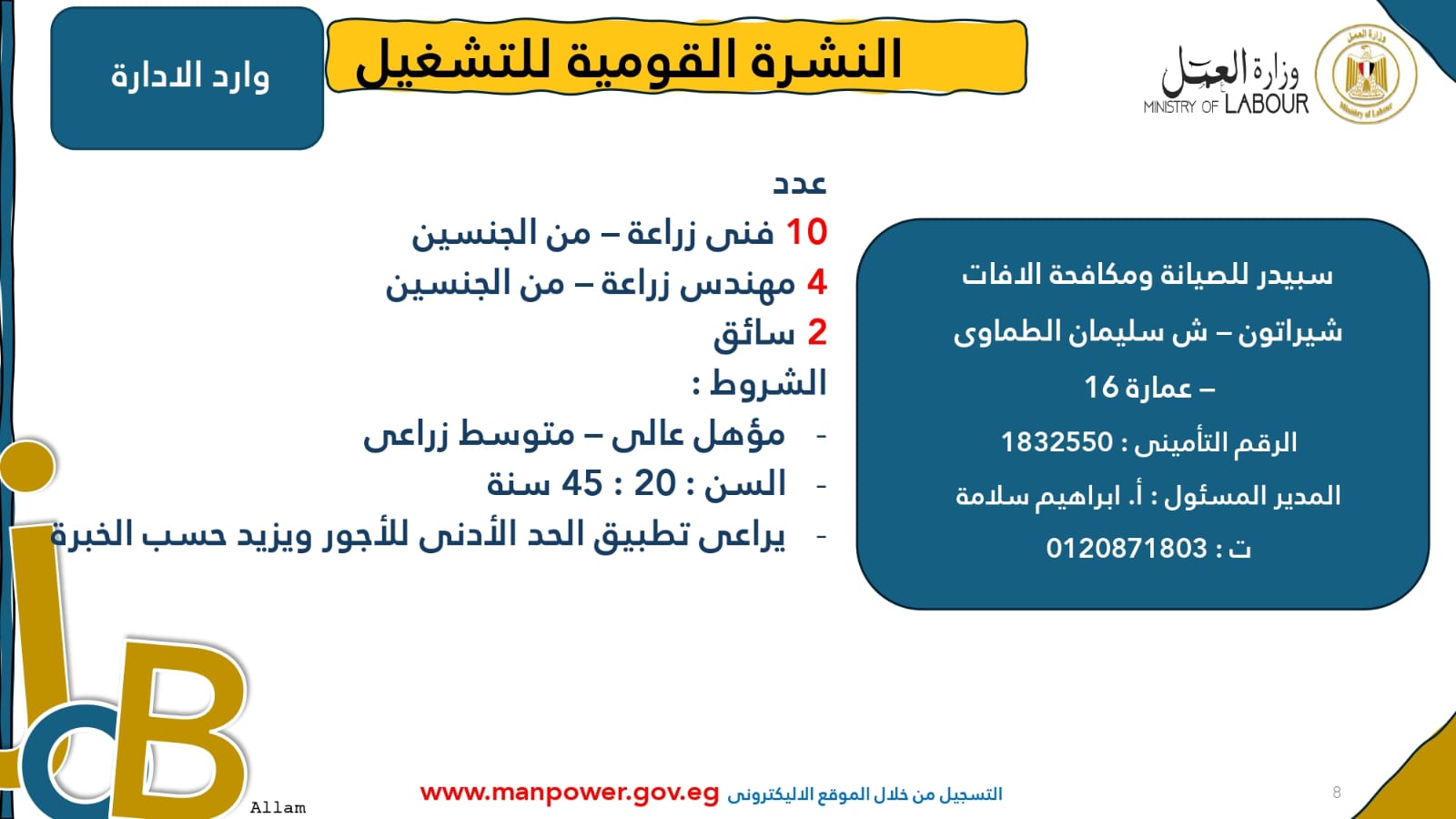 وأشارت الوزارة إلى أن نشرة التوظيف نصف الشهرية تُصدر بانتظام كل 15 يومًا من خلال الإدارة العامة للتشغيل برئاسة هبة أحمد، وإعداد منى شوقي – باحث أول بالإدارة، وتتضمن أحدث فرص العمل المتاحة في مختلف المحافظات.