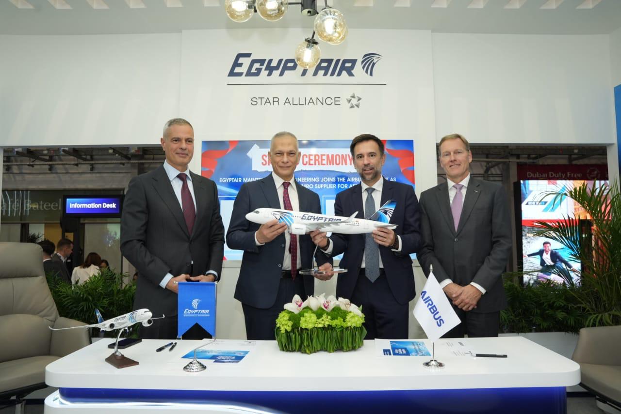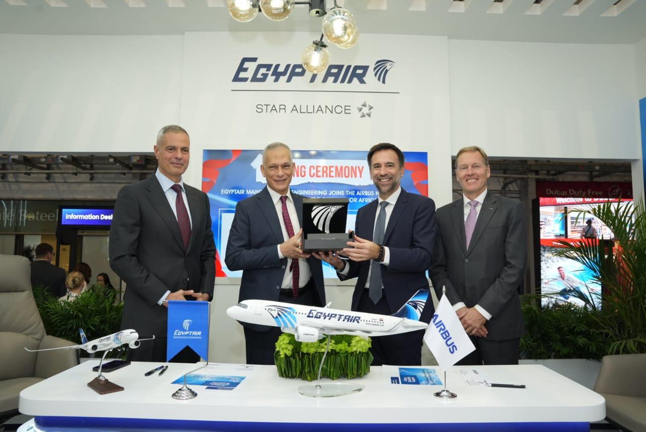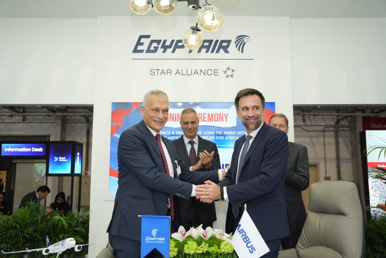 وقام بتوقيع الاتفاقية المهندس إبراهيم فتحي رئيس مجلس الإدارة والعضو المنتدب التتفيذي لشركة مصر للطيران للصيانة والأعمال الفنية، وعن شركة أيرباص جابريل سيميلاس رئيس أيرباص لمنطقة أفريقيا والشرق الأوسط.
