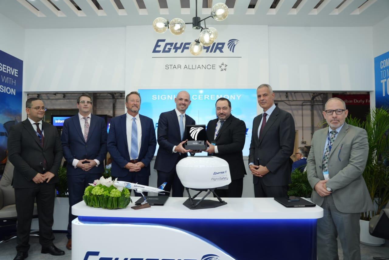 وشهد الطيار أحمد عادل رئيس مجلس الإدارة والعضو المنتدب التنفيذي للشركة القابضة لمصر للطيران توقيع الاتفاقية خلال فعاليات معرض دبي للطيران 2025 والتي وقعت بين الطيار وليد سليمان رئيس أكاديمية مصر للطيران للتدريب ، وMatt Laue, نائب رئيس المبيعات.