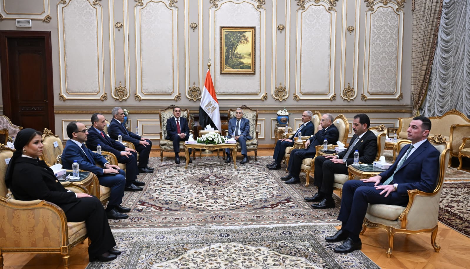 استقبل المستشار عصام فريد، رئيس مجلس الشيوخ، اليوم بمقر المجلس، الدكتور مصطفي مدبولي، رئيس مجلس الوزراء، لتقديم التهنئة بمناسبة توليه منصبه رئيسًا لمجلس الشيوخ.