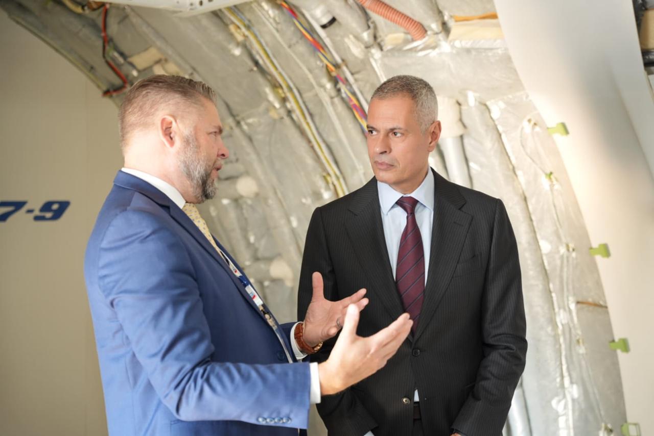 رئيس القابضة لمصر للطيران في زيارة تفقدية لطائرة Boeing 777X