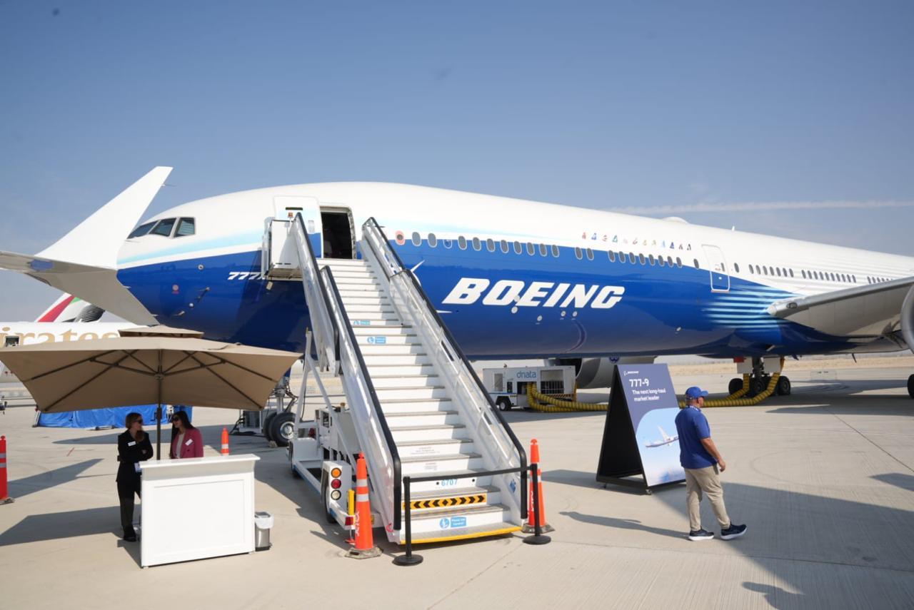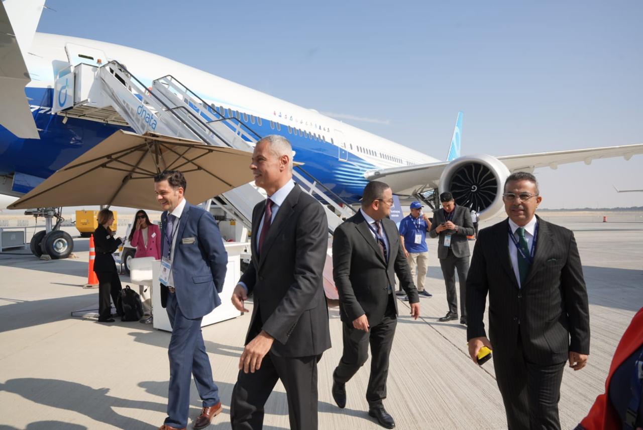 وخلال جولته، اطلع “عادل” على الإمكانات الفنية والتشغيلية للطراز الجديد، واستمع إلى شرح تفصيلي من مسؤولي شركة بوينج حول أبرز ما يميز الطائرة من ابتكارات هندسية متقدمة ومحركات GE9X عالية الكفاءة، التي تسهم في خفض استهلاك الوقود وتحسين الأداء البيئي.