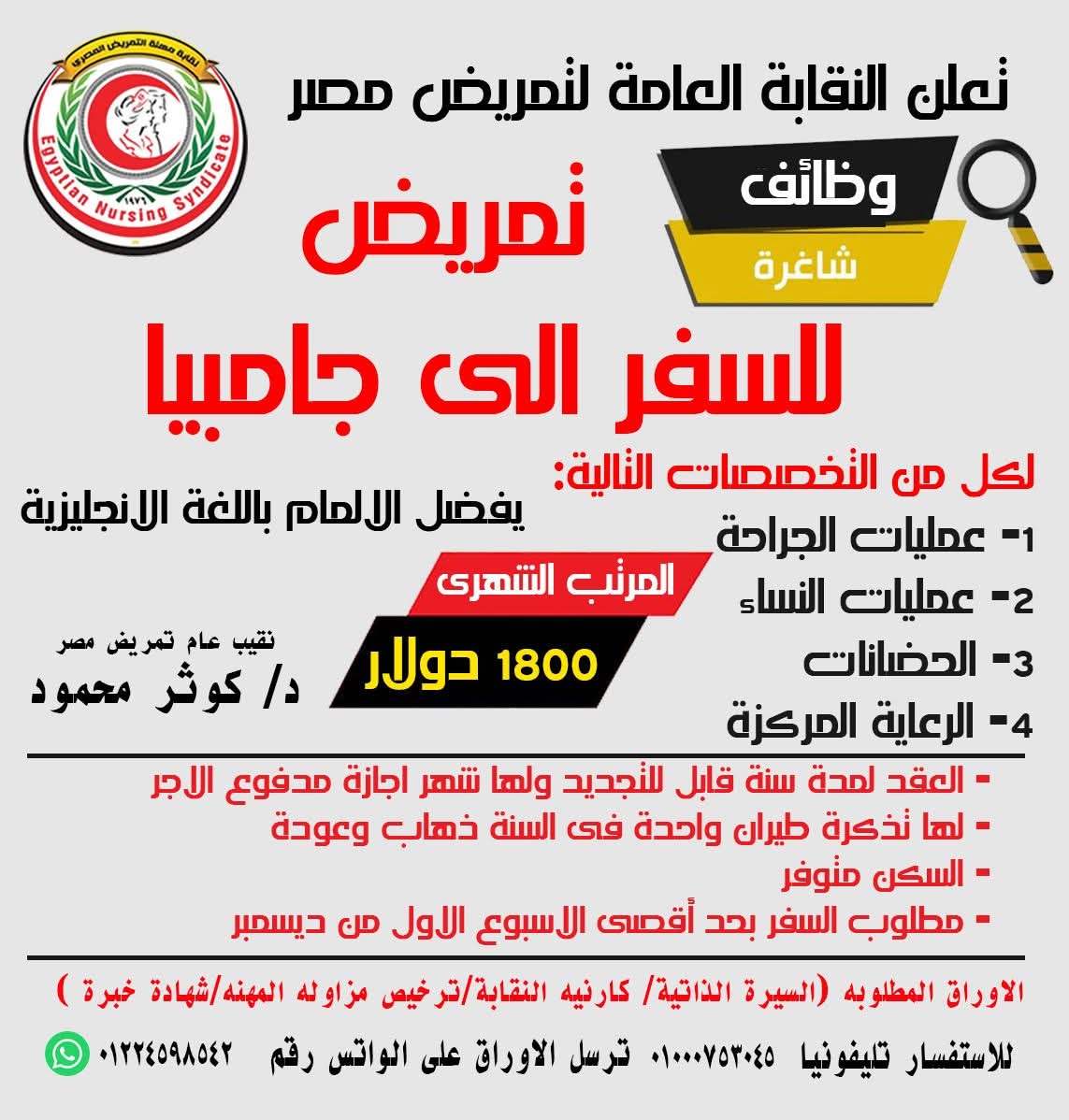 أعلنت النقابة العامة للتمريض، وظائف شاغرة في جامبيا، لعدة تخصصات يستعرضها "إيجي إن" خلال السطور التالية.