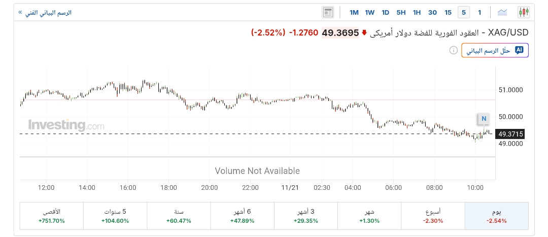 أسعار الفضة اليوم وفقاً لـ انفستينج