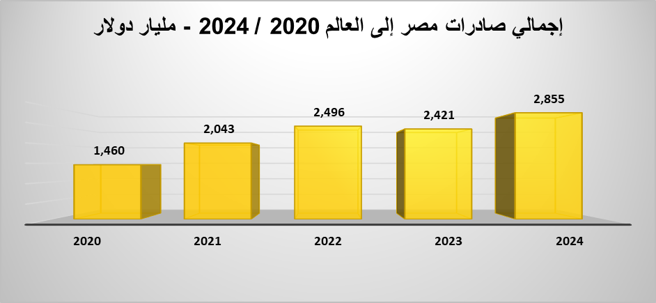 إجمالي صادرات مصر من الملابس الجاهزة 2020 / 2024 – مليار دولار