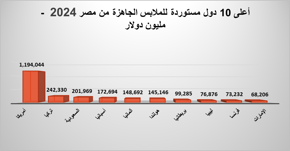 أعلى 10 دول مستوردة للملابس الجاهزة من مصر عام 2024