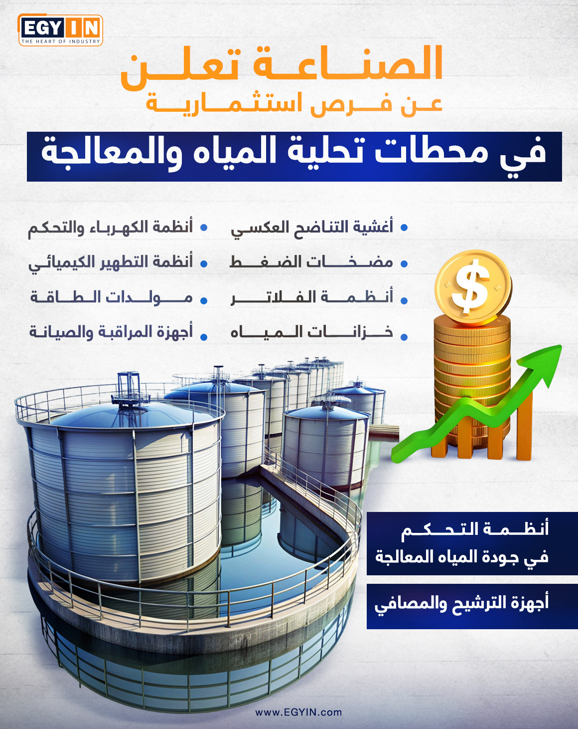 الصناعة تعلن فرص استثمارية في محطات تحلية المياه والمعالجة (إنفوجراف)