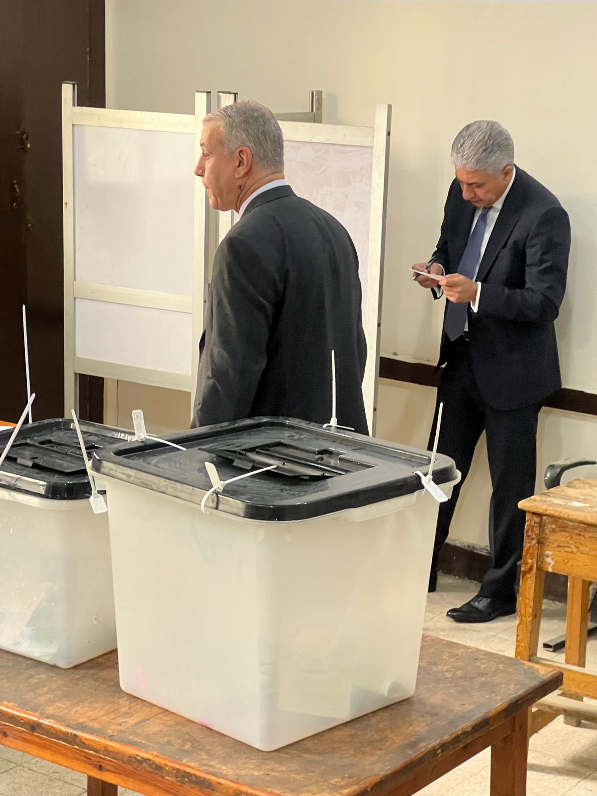 وزير قطاع الأعمال يدلي بصوته في انتخابات مجلس النواب بمدرسة سيزا نبراوي