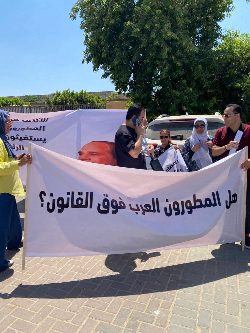 كما تداول رواد مواقع التواصل مقاطع تظهر تجمعات لعدد من المتضررين، وهم يرفعون لافتات تعكس حالة الغضب والإحباط التي وصلوا إليها بعد سنوات من الانتظار، منها: "هل المطورون العرب فوق القانون؟".