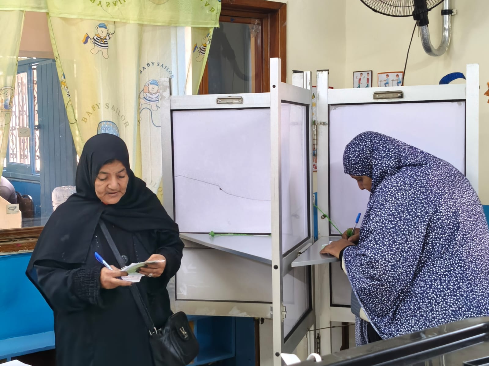 السيدات يتصدرن المشهد، توافد الناخبين للتصويت بلجان قومية الأهرام