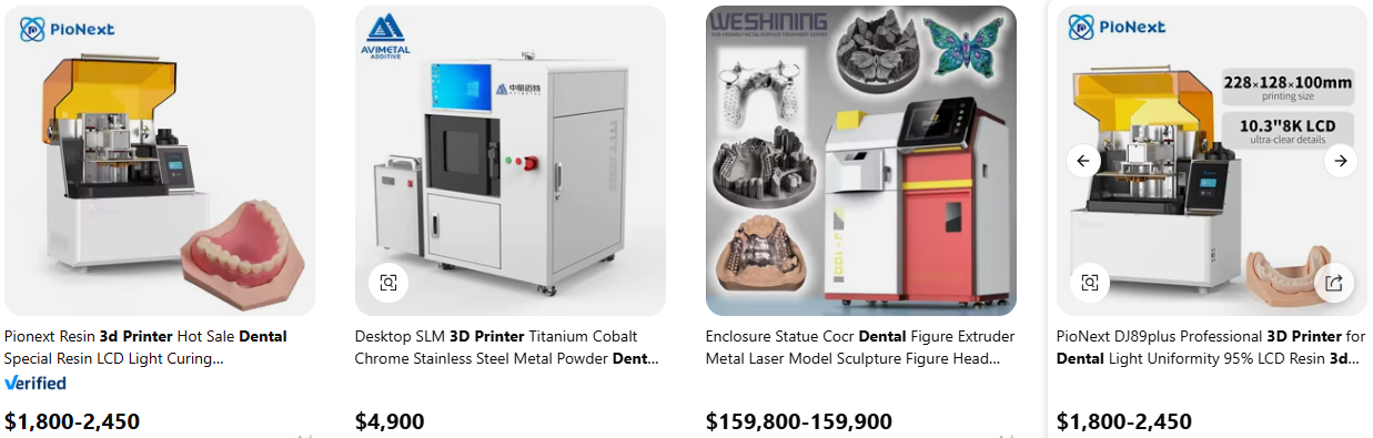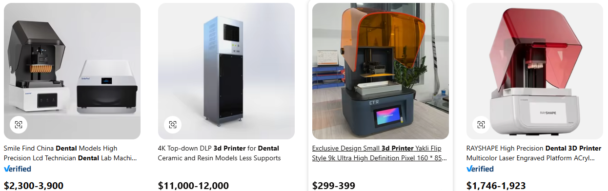 ويتراوح أسعار الطابعات ثلاثية الأبعاد المتخصصة في صناعة طب الأسنان بين 299 دولار إلى 159,900 ألف دولار، وفقًا لموقع على بابا العالمي، المتخصص في التجارة العالمية.
