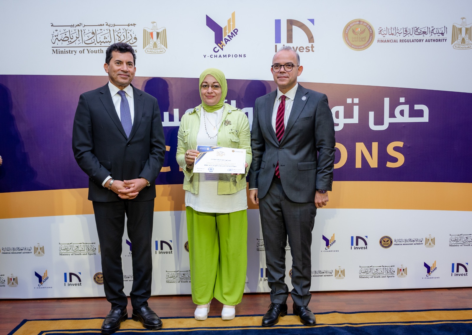 وقد اختار رئيس هيئة الرقابة المالية ووزير الشباب والرياضة 3 فائزين وقاموا بتكريمهم في مسابقة Y Champions.