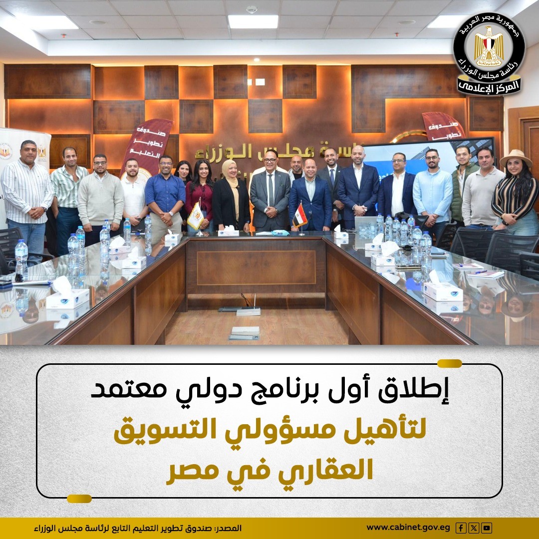 أطلق صندوق تطوير التعليم التابع لرئاسة مجلس الوزراء، أول برنامج دولي معتمد لتأهيل مسؤولي التسويق العقاري في مصر.