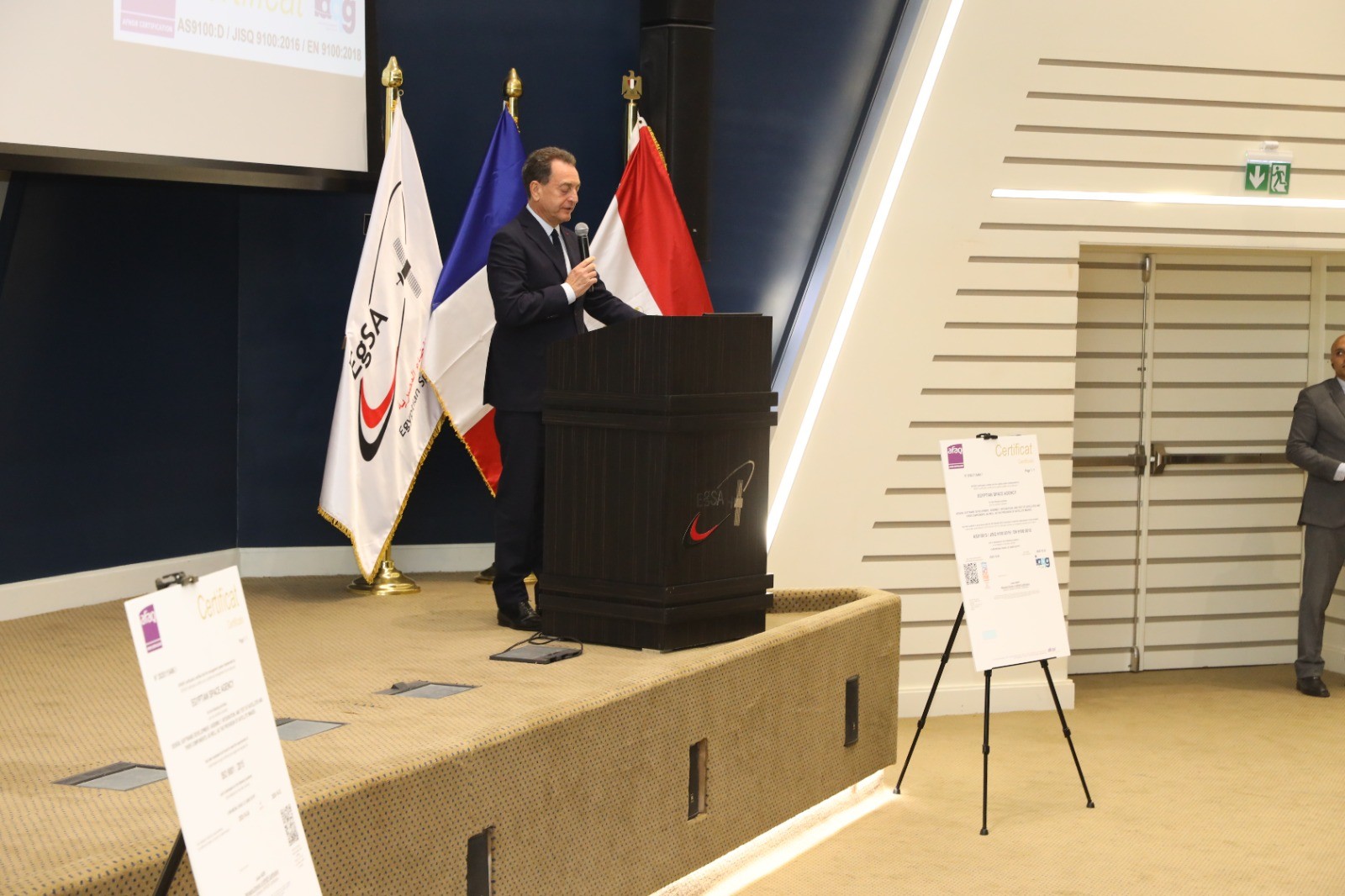 وتضمن برنامج الاحتفال مراسم تسليم الشهادتين رسميًا وتكريم عدد من مهندسي وإداري الوكالة بمنحهم شهادات معتمدة تقديراً لجهودهم في إنجاح هذا المسار الهام لاعتماد الوكالة طبقاً لمتطلبات الفضاء والطيران.