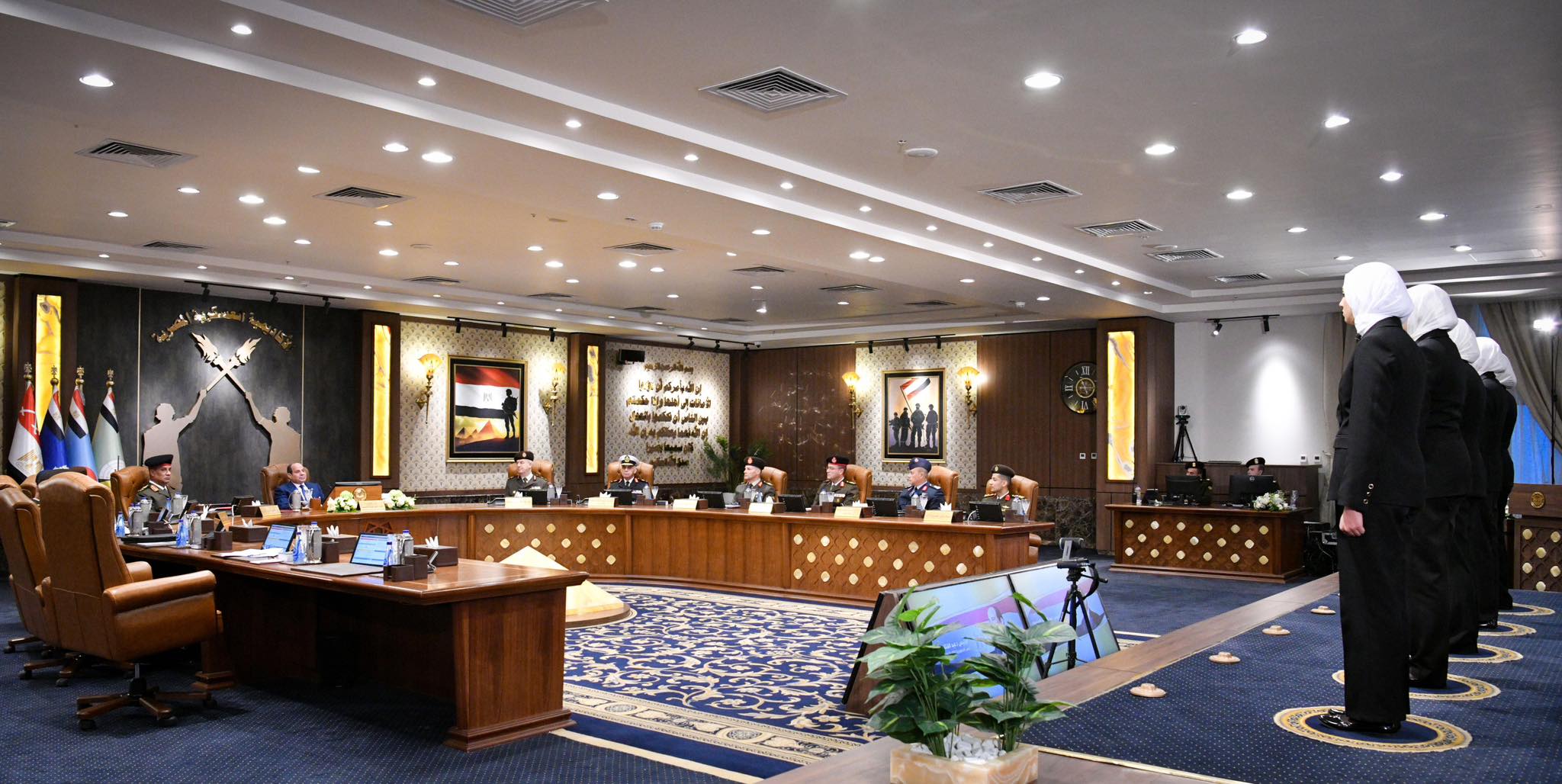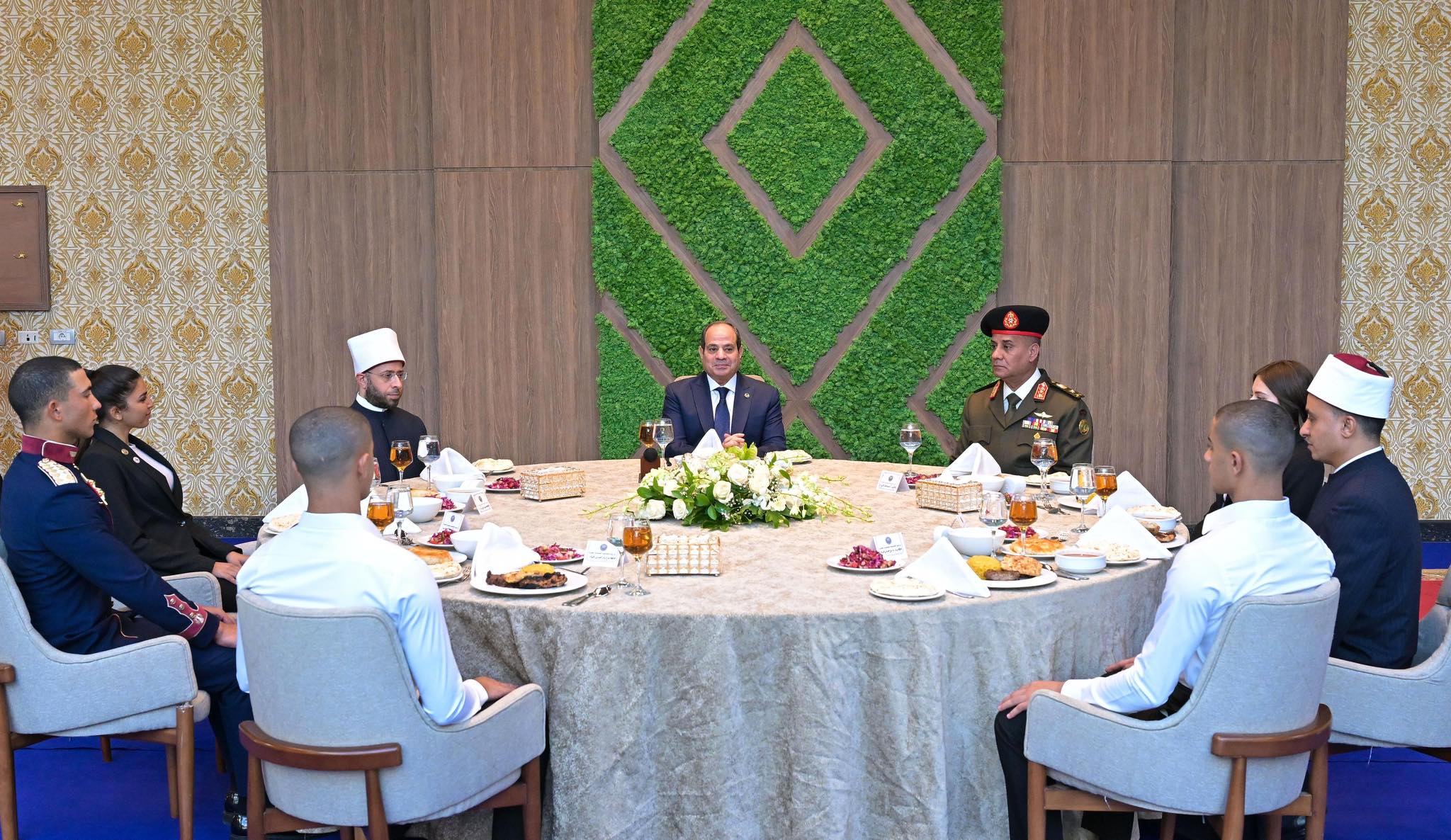 وذكر المتحدث الرسمي أن الرئيس قد تناول وجبة الغداء مع مدير الأكاديمية العسكرية المصرية، ومديري الكليات العسكرية، ووزير الأوقاف، والطلبة الدارسين بالأكاديمية، حيث دار نقاش تفاعلي بين الرئيس وطلبة الأكاديمية، أشار خلاله الرئيس إلى أنه يمكن للطلبة المؤهلين من الإناث والذكور الالتحاق بكلية الطب العسكري سواء بالصفة العسكرية أو بالصفة المدنية، معاودًا طمأنة أسر الطلبة بأن الأمور تدار في الكلية بشكل محكم ومدروس وفقا لأعلى المعايير.