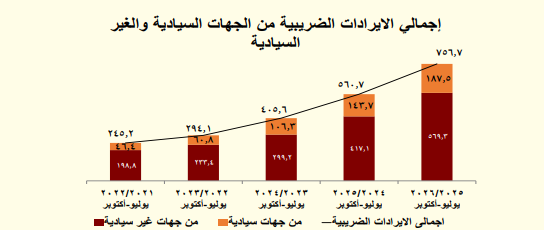 ارتفعت الإيرادات الضريبية بشكل ملحوظ بنحو 35% مقابل العام السابق، لتسجل نحو 756,6 مليار جنيه خلال الفترة من يوليو إلى أكتوبر 2026/2025، وهو ما يمثل 3.6% من الناتج المحلى الإجمالي، وفقاً لما ذكره التقرير المالي الشهري لوزارة المالية.