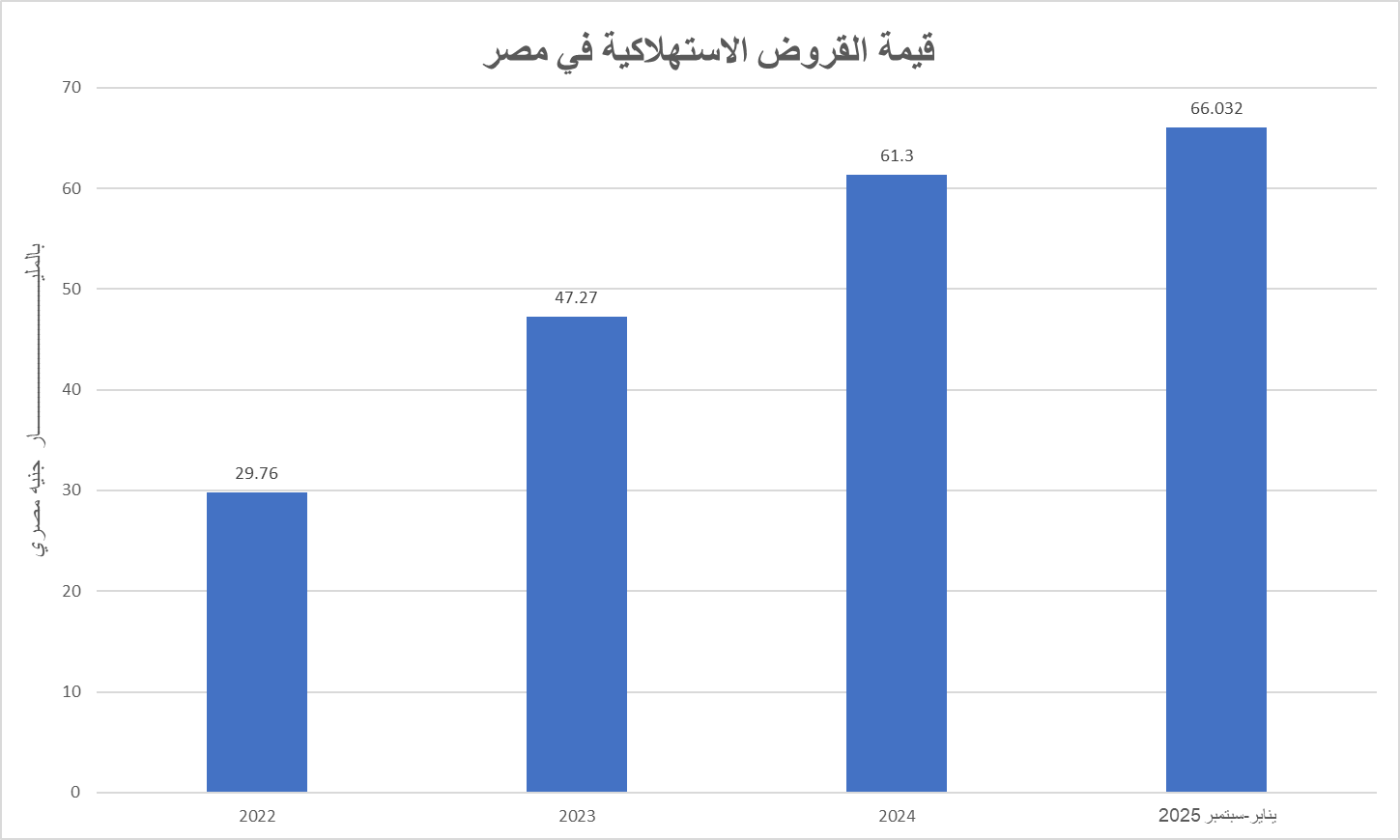 قيمة القروض الاستهلاكية أول 9 أشهر من 2025 حوالي 66.032 مليار جنيه