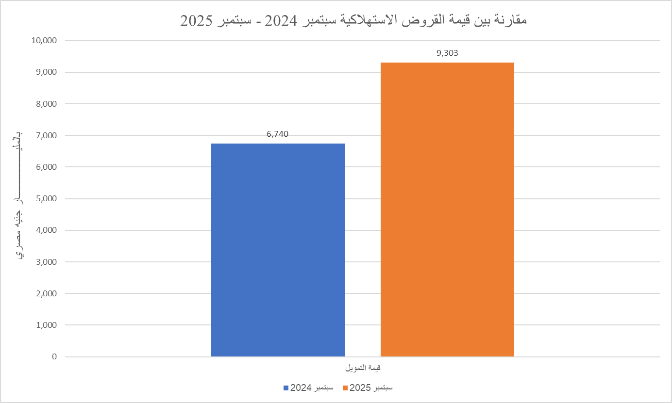 ووفقًا لأحدث إحصائيات الهيئة العامة للرقابة المالية، والتي نشرت إحصائيات شهر سبتمبر 2025، فقد تم الإعلان عن ارتفاع في إجمالي قيمة التمويل الاستهلاكي بنسبة 38%، مسجلًا خلال الشهر 9.303 مليار جنيه، موزعة على 1.092 مليون عميل، مقابل 6.740 مليار جنيه لشهر سبتمبر 2024، موزعة على 390 ألف عميل.