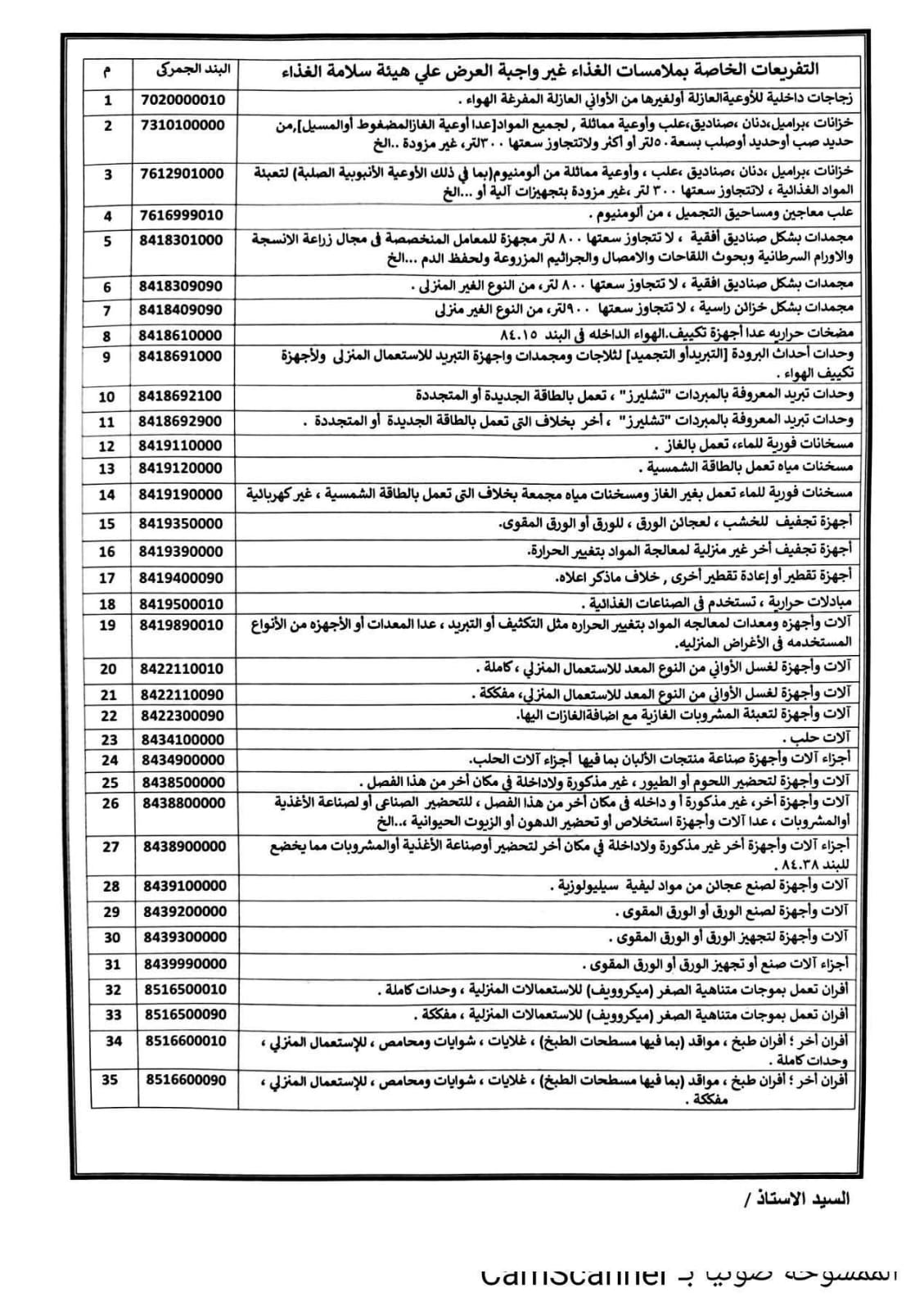 تسهيلات جمركية جديدة، استبعاد عرض بعض الأصناف على هيئة «سلامة الغذاء»