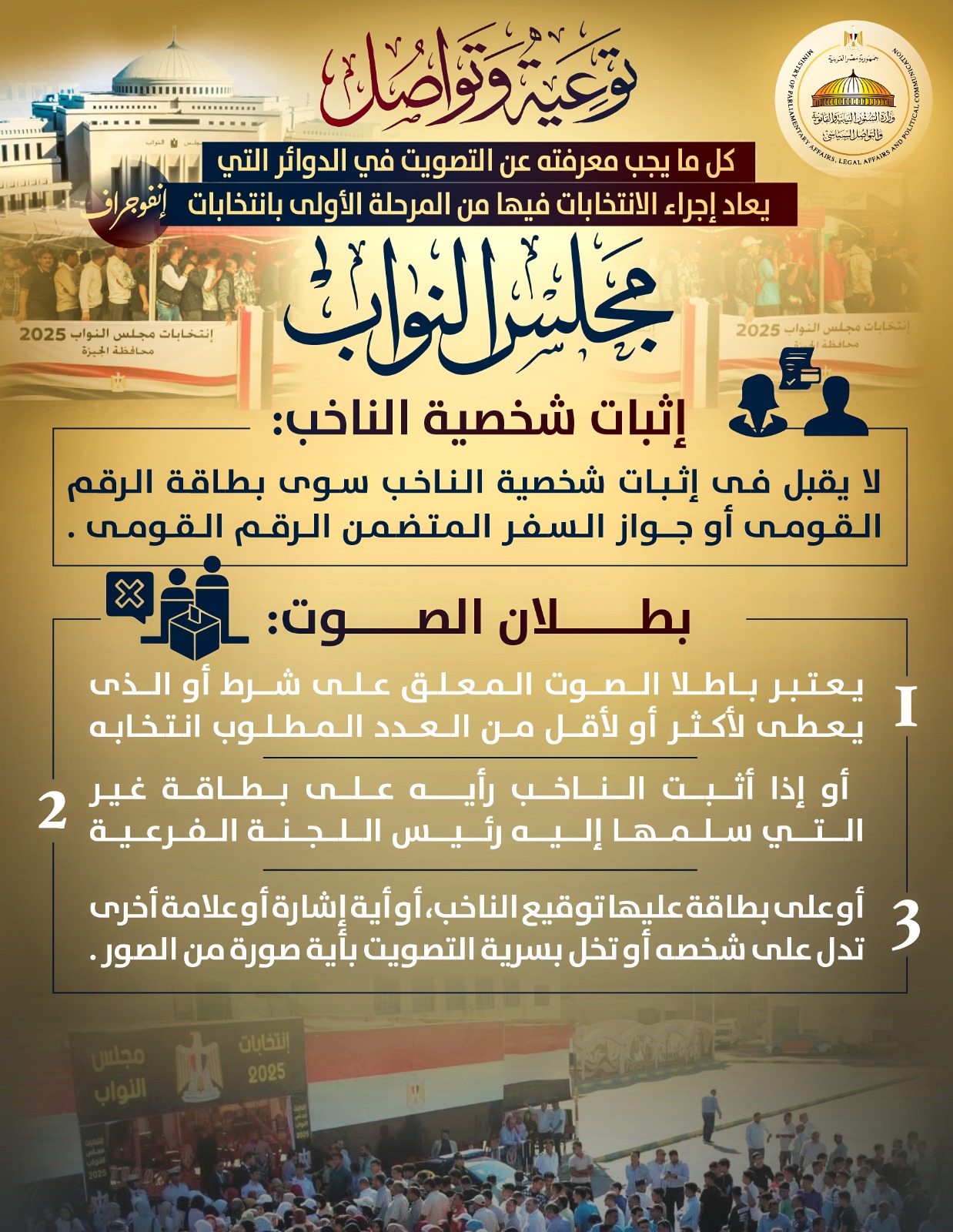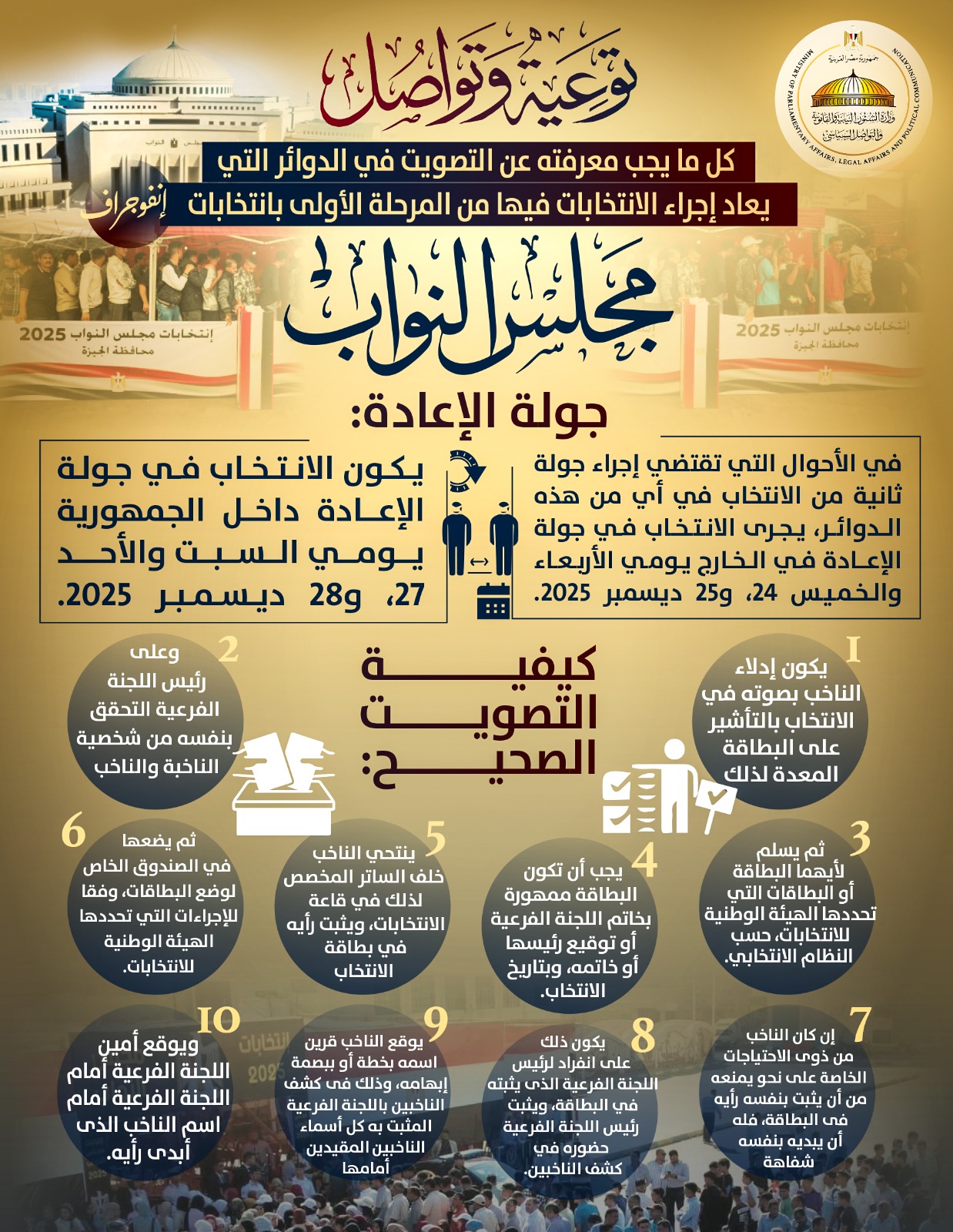 «الشؤون النيابية» تكشف تفاصيل إعادة التصويت في الدوائر الانتخابية المُلغاة (إنفوجراف)