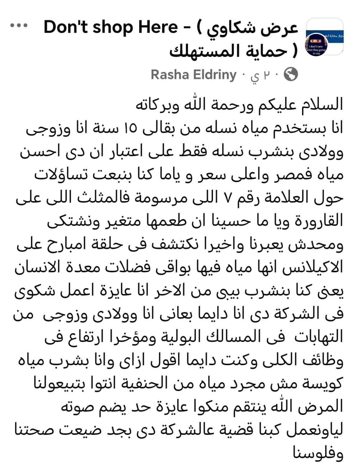 وأكدت أن أفراد أسرتها زوجها وأطفالها، يعانون منذ سنوات من التهابات متكررة في المسالك البولية وارتفاعات في وظائف الكلى، رغم اعتمادهم الكامل على مياه معبأة بدل مياه الحنفية، مُضيفة : “كنت دايمًا أسأل إزاي يحصل لنا كده وإحنا بنشرب مياه كويسة؟ النهارده بقيت حاسة إني اتخدعت، وصحتنا وفلوسنا راحت.”