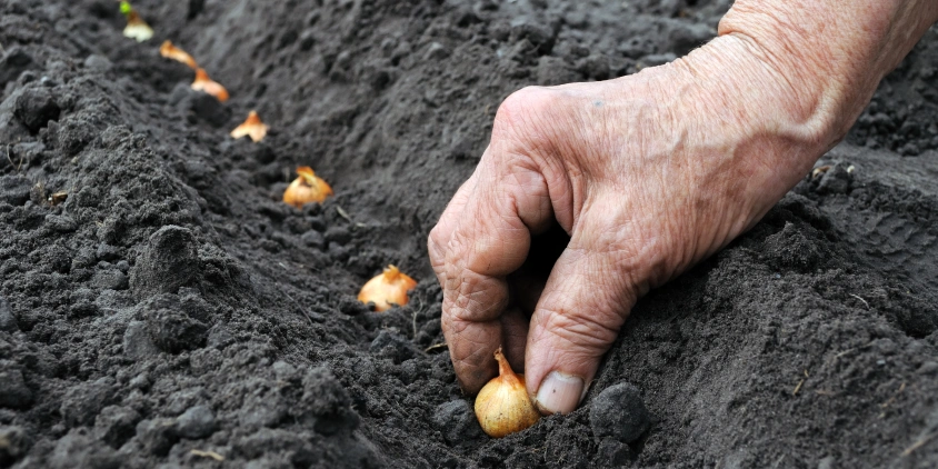 عند تحديد عمق زراعة البصل، احرص على أن يكون العمق حوالي ٢.٥ سم. فالنباتات لا تتمكن من النمو بشكل صحيح عند زراعتها بعمق شديد في التربة، مما يؤدي إلى بصيلات أصغر حجمًا وتشوه شكلها، إذا كنت ترغب في نمو محاصيلك وإنتاجها بكامل طاقتها، فعليك زراعتها بشكل صحيح والعناية بها أثناء الزراعة.