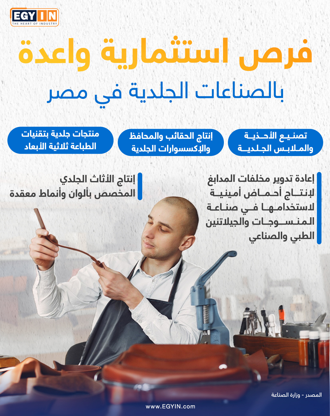 ويستعرض موقع “إيجي إن” من حلال الإنفوجراف التالي، أبرز الفرص الاستثمارية الواعدة بالصناعات الجلدية في مصر خلال 2025، وهي: