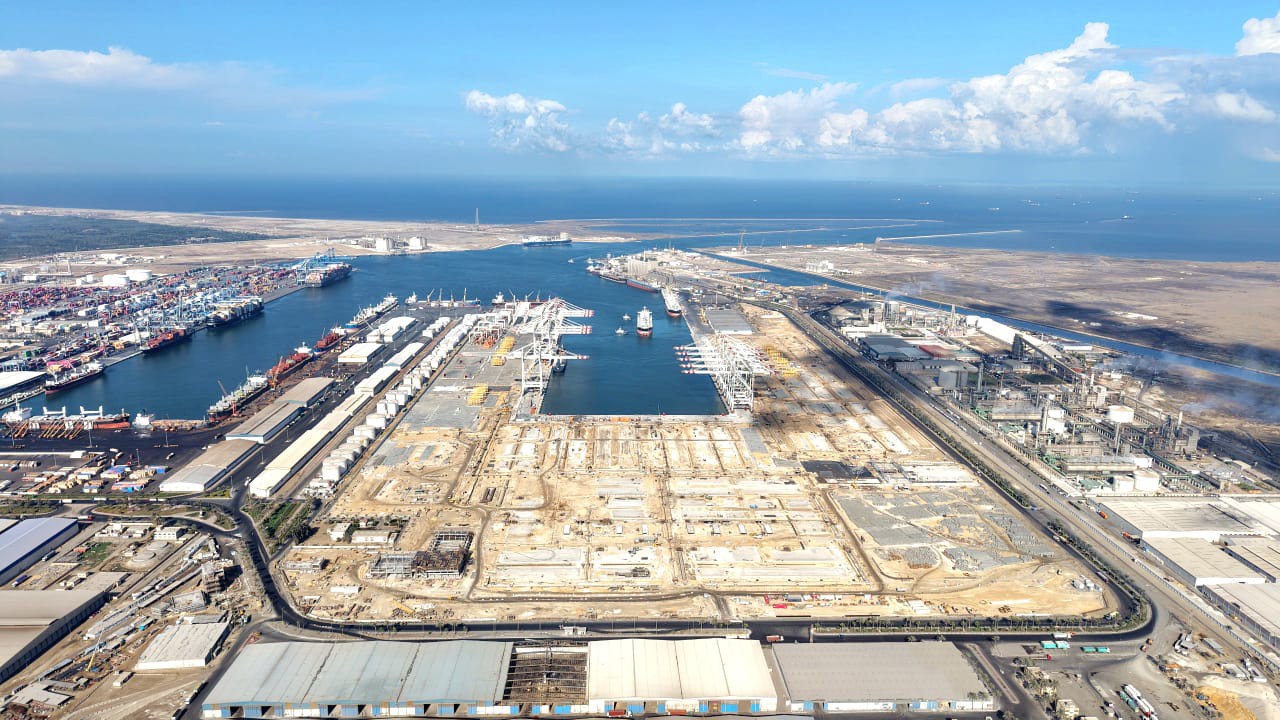 وكشفت أحدث لقطات التصوير الجوي عن تقدم كبير في أعمال تنفيذ البنية الفوقية التي تقوم بها شركة دمياط أليانس المشغلة للمحطة، ضمن شراكة تجمع كبرى الشركات العالمية، وهي: يوروجيت الألمانية، وكونتشيب الإيطالية، والخط الملاحي العالمي هاباج لويد.