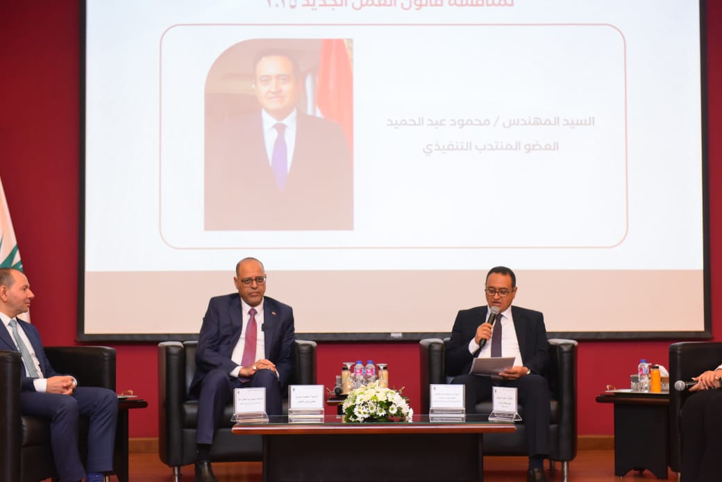 وزير العمل محمد جبران خلال مشاركته في الندوة
