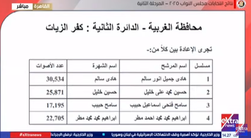 نتيجة انتخابات مجلس النواب 2025، دوائر محافظة الغربية كاملة (الأسماء)