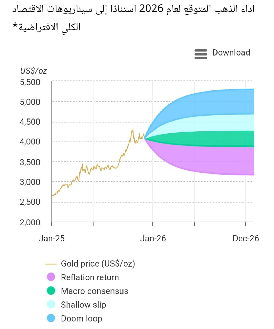 ومن المتوقع أن يرتفع سعر الذهب بنسبة تتراوح بين 5% و15% في عام 2026 عن مستوياته الحالية، اعتمادًا على شدة التباطؤ الاقتصادي، وسرعة وحجم تخفيضات أسعار الفائدة.