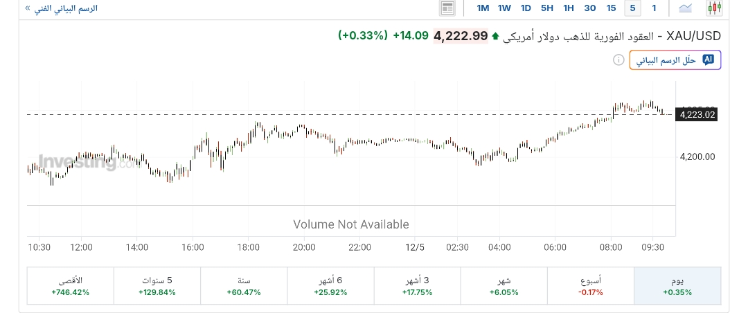 وارتفعت الأسعار الفورية للذهب بنسبة 0.3%، لتتداول حاليًا عند 4,222 دولارًا للأوقية، بعدما افتتحت التداولات عند 4,208 دولارًا، مسجلة أعلى مستوى لها عند 4,230 دولار، وأدنى مستوى عند 4,194 دولارًا، بحسب تقرير موقع «إنفيستينج».