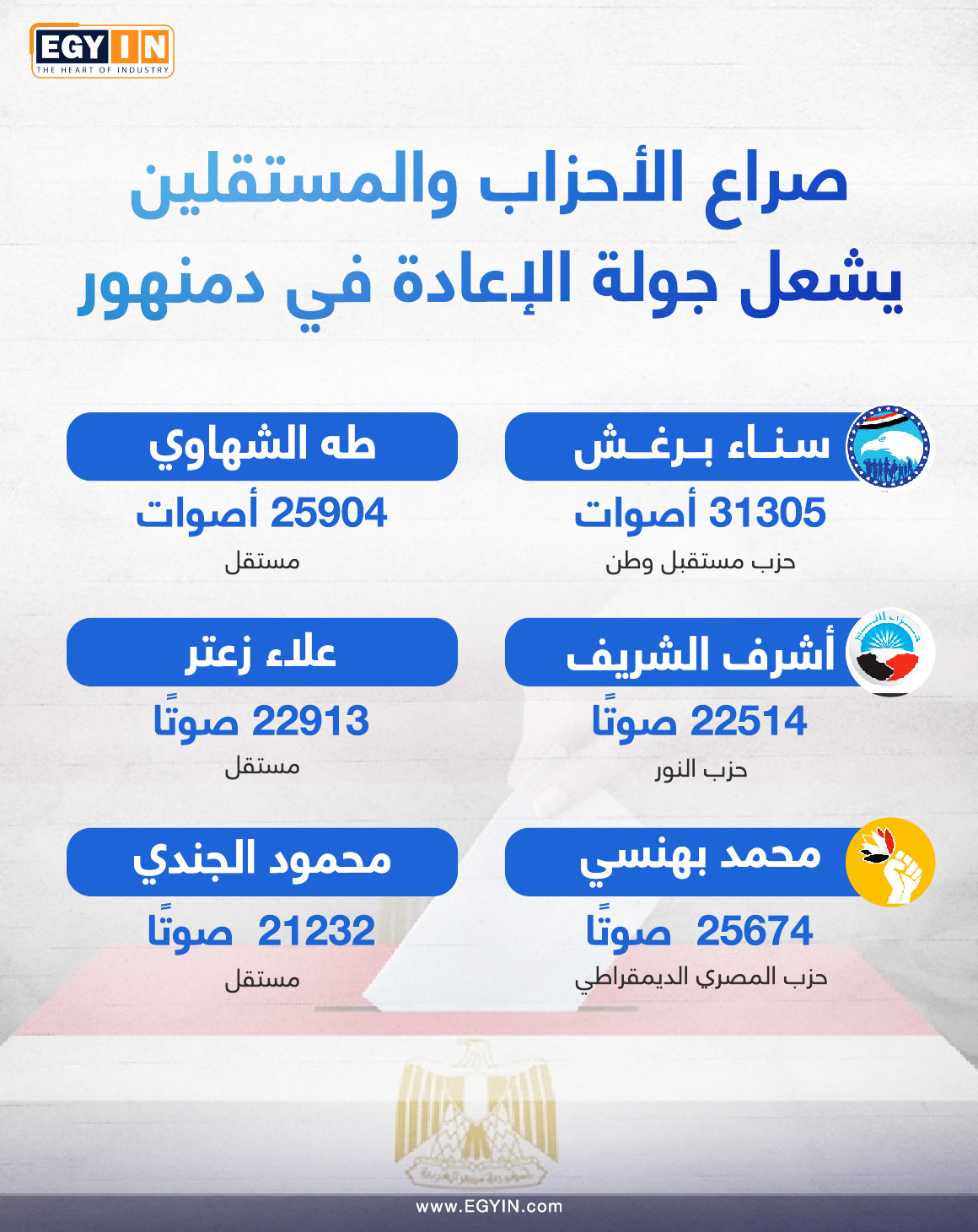 صراع الأحزاب والمستقلين يشعل جولة الإعادة في دمنهور (إنفوجراف)