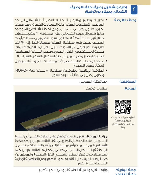2. إدارة وتشغيل رصيف خلف الرصيف الشمالي بميناء بورتوفيق