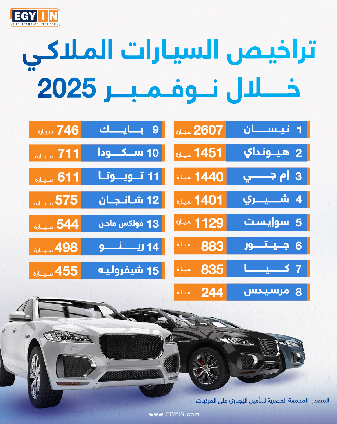 تراخيص السيارات الملاكي خلال نوفمبر 2025 (انفوجراف)