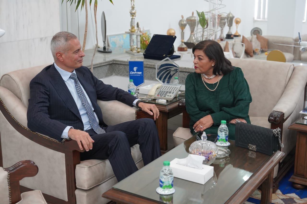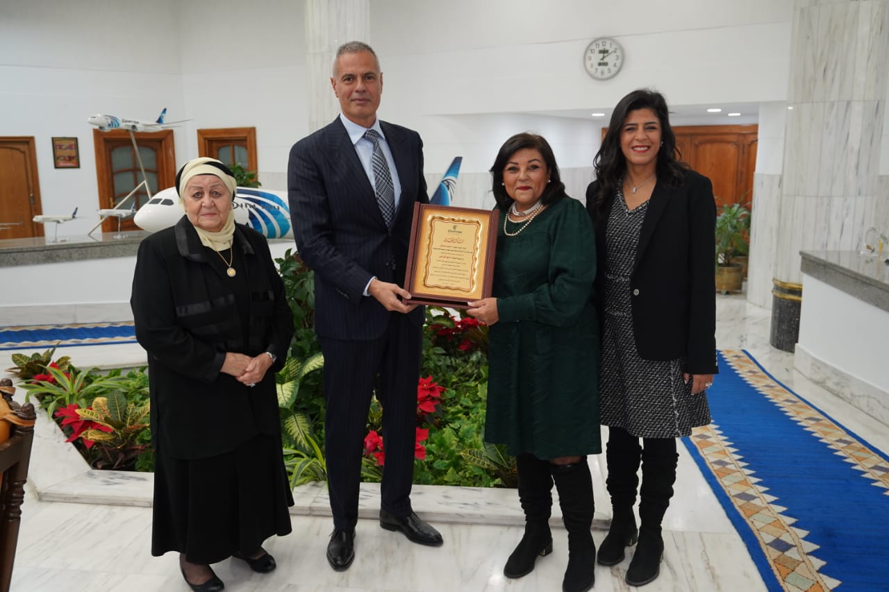 قام الطيار أحمد عادل رئيس الشركة القابضة لمصر للطيران بتكريم داليا المراغي رئيس قطاع التحالفات والعلاقات الدولية بالشركة القابضة لمصر للطيران بمناسبة بلوغها سن التقاعد، تقديرًا لمسيرتها المهنية وما قدمته من جهود مخلصة طوال سنوات خدمتها.