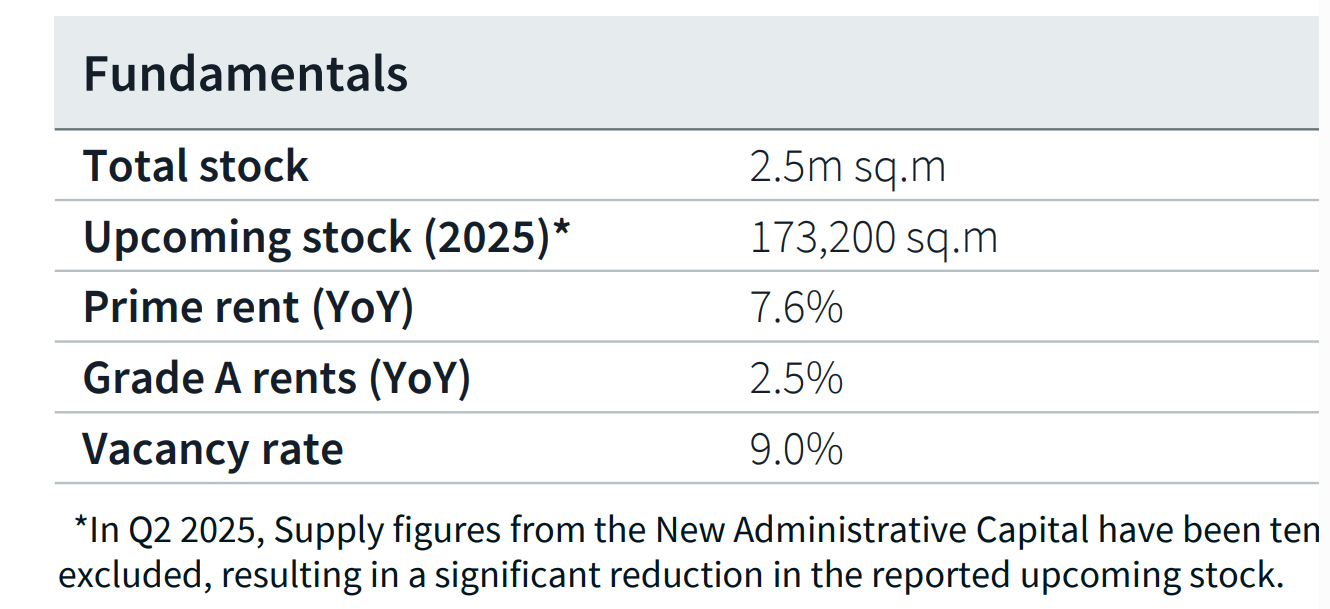 أظهر تقرير حديث أنه تم تسليم حوالي 71,600 متر مربع خلال يوليو وأغسطس وسبتمبر 2025، ليصل إجمالي المكاتب الجاهزة للتأجير إلى 2.5 مليون متر مربع.