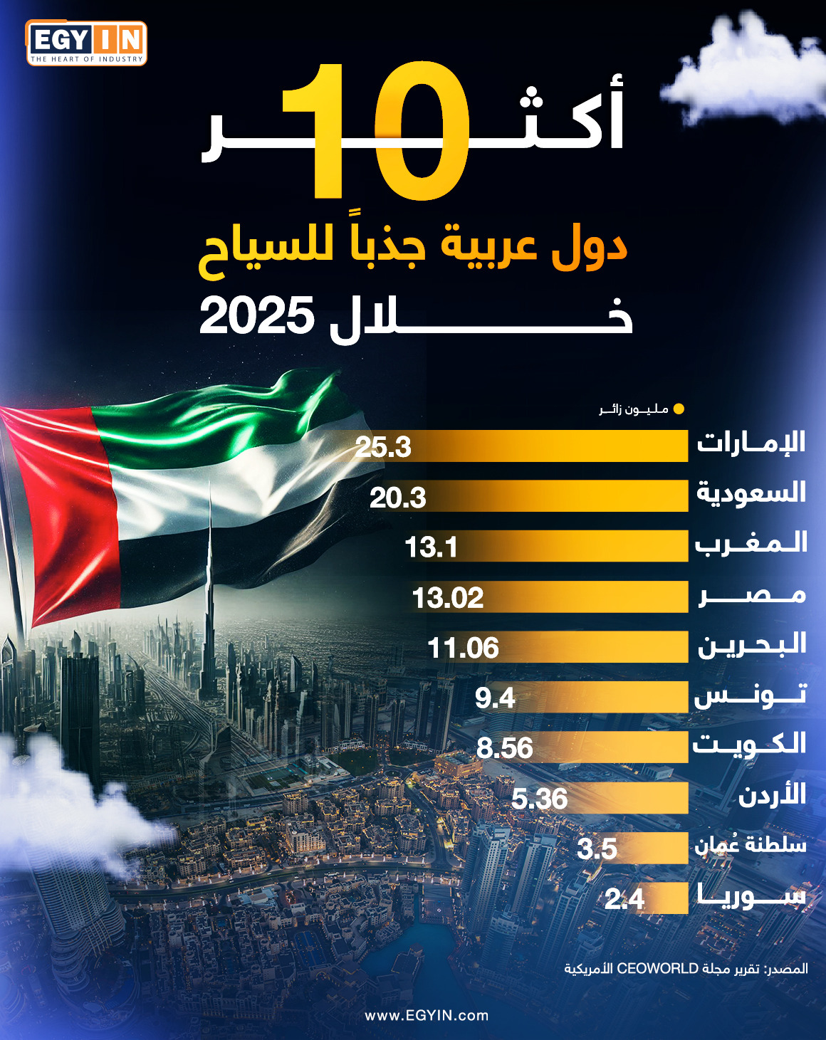 أكثر 10 دول عربية جذبًا للسياح خلال 2025 (انفوجراف)