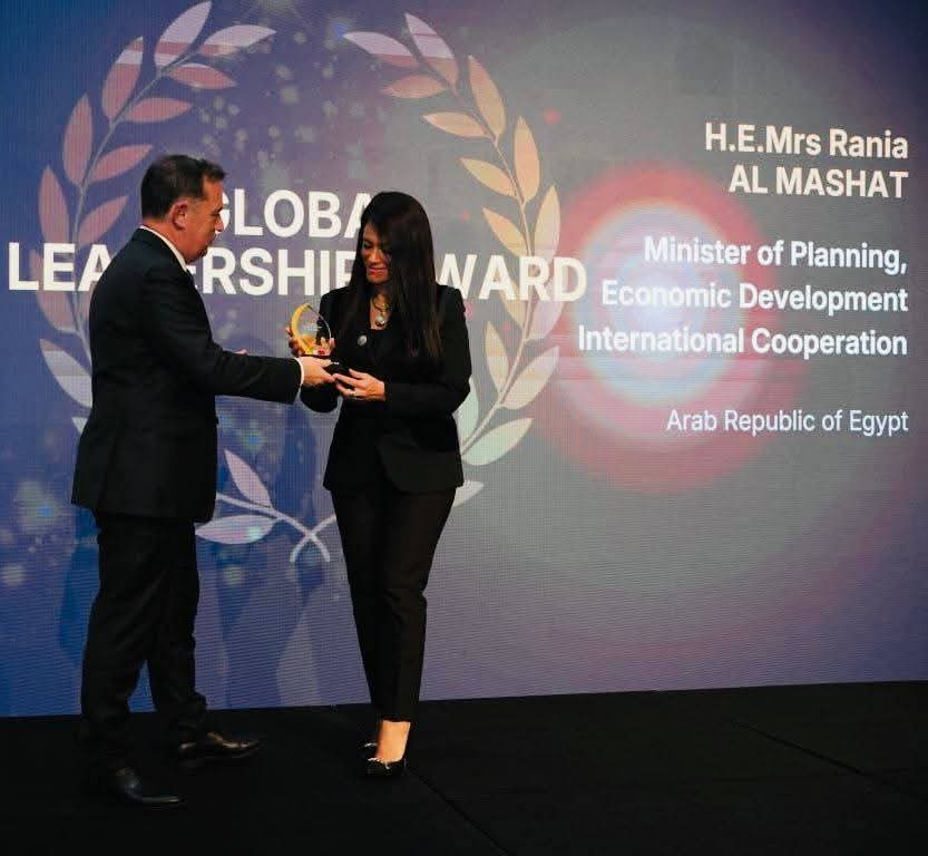 تسلّمت الدكتورة رانيا المشّاط، وزيرة التخطيط والتنمية الاقتصادية والتعاون الدولي، جائزة «القيادة الدولية» من معهد الفكر والأبحاث الدولي «شوازيل»، خلال فعاليات الحوار الأفريقي الخليجي المنعقد بالعاصمة القطرية الدوحة، على هامش منتدى الدوحة، تحت رعاية الأمير تميم بن حمد آل ثاني، أمير دولة قطر.