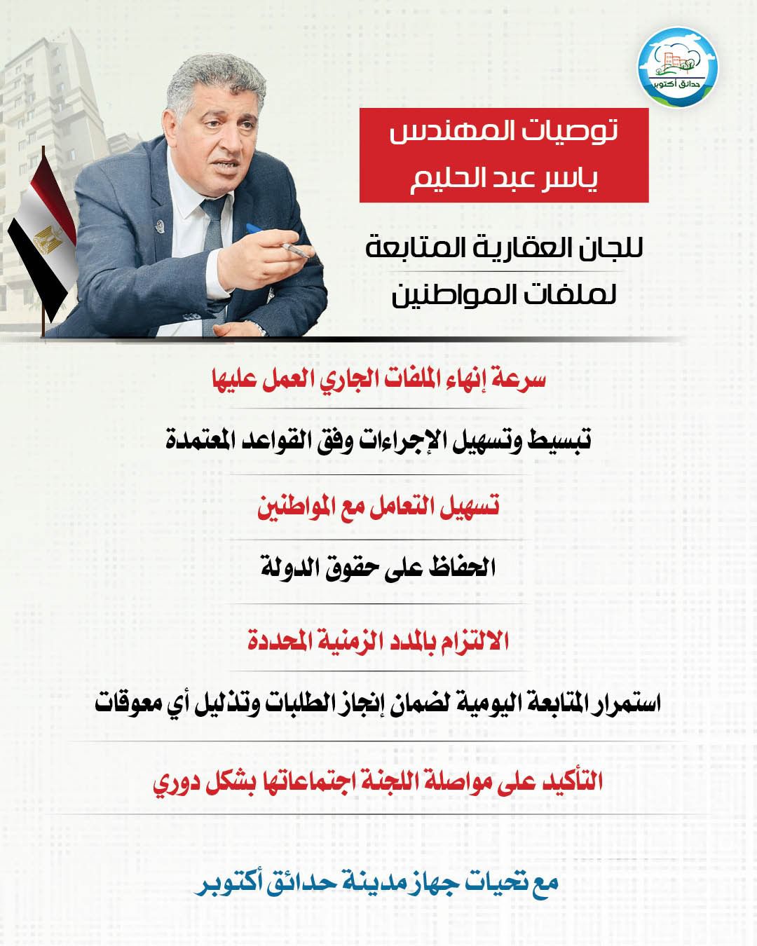توصيات عاجلة لجهاز حدائق أكتوبر للجان العقارية لمتابعة ملفات المواطنين