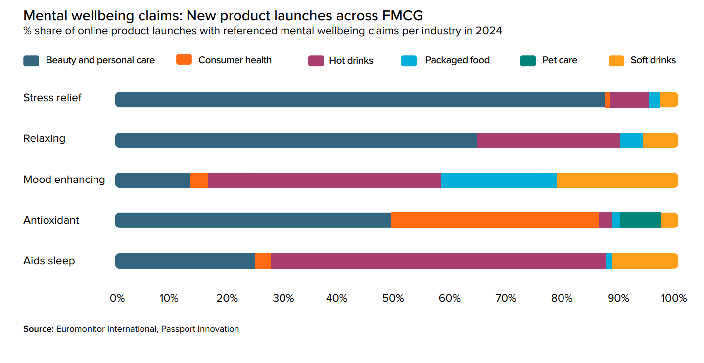 يُلاحظ من خلال هذه المؤشرات أن الصحة النفسية، أصبحت صفة بيع أساسية، وليست مجرد إضافة، والدليل على هذا الإحصائيات التي نشرتها يورومونيتور، وهي أن حوالي 10% من المنتجات الجديدة التي تم طرحها على الإنترنت في الفترة من سبتمبر 2024 إلى أغسطس 2025، تضمنت معلومات تشير أنها تقدم رفاهية عاطفية وراحة نفسية.