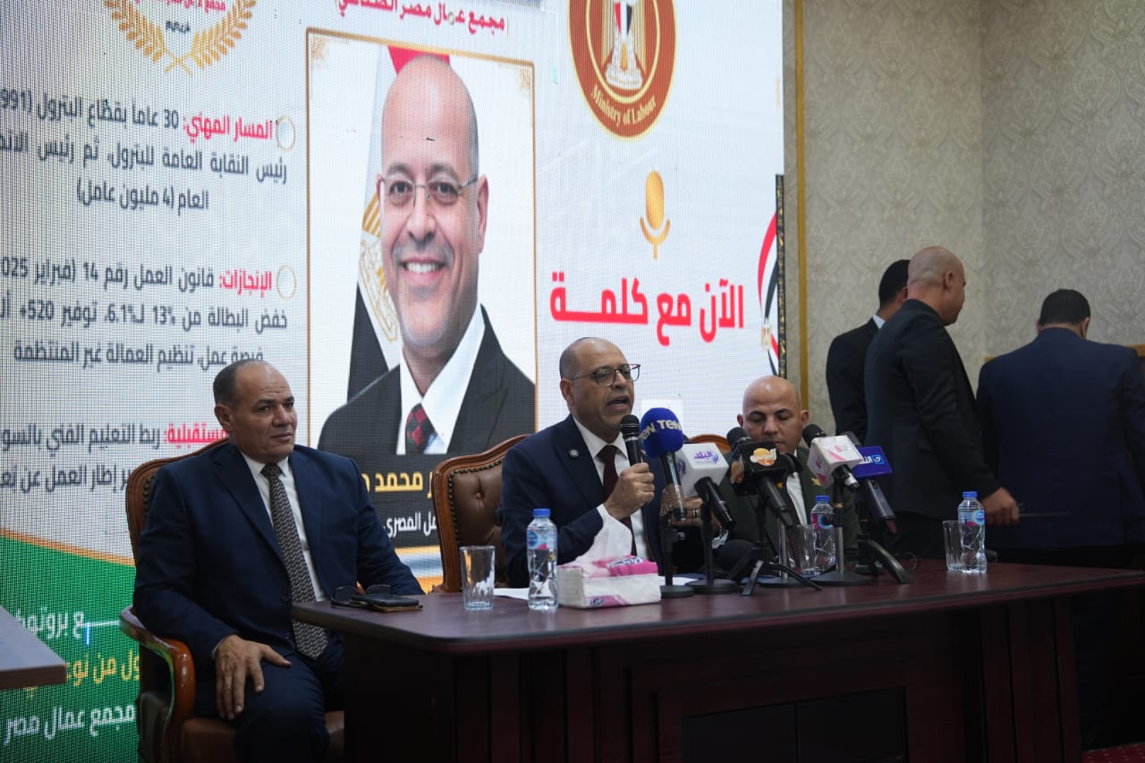 كما شهدت الفعاليات توقيع مذكرة تفاهم بين وزارة العمل ومجمع عمال مصر، لدعم المصانع بالموارد البشرية المؤهلة والعمالة الفنية المدربة، بما يسهم في رفع كفاءة سوق العمل ودعم خطط التنمية الصناعية.