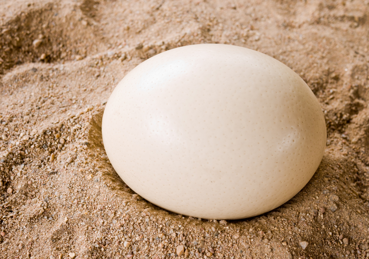 وتضع الإناث من طيور النعامة بيضها بشكل موسمي خلال الفترة من الربيع وحتى بدايات الخريف، تُنتج كل أنثى بيضة كل بضعة أيام تقريبًا، مع إمكانية توقفها عن الوضع لفترات بسبب الظروف الجوية أو عوامل أخرى، إذ يُمثل بيض النعام أكبر بيضة تُنتجها أي نوع من الطيور الحية، رغم أنه يُعتبر الأصغر نسبيًا مقارنة بحجم الطائر نفسه (يصل وزن النعامة إلى ما بين 90 و113 كيلوجرامًا، مما يجعلها الطائر الأكبر حجمًا حقًا)، يبلغ سمك قشرة البيضة نحو 2 ملم، وتُشبه الخزف في أناقتها ولمعانها الساحر، حيث تتكون أساسًا من الكالسيت البلوري الذي يمنحها قوة ومتانة استثنائية.