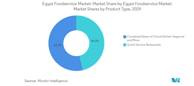 في المقابل، ظهر نجم جديد بقوة، وهو "المطابخ السحابية"، هذا النوع من المطاعم هو عبارة عن وحدة مطبخ احترافية ومصممة لتحضير الطعام لخدمة التوصيل فقط، دون وجود مساحة مخصصة لاستقبال المستهلك، وفعلا، استحوذ على حوالي 53.7% من إجمالي المطاعم في السوق المصرية، ويُتوقع أن ينمو هذا النوع من المطاعم بمعدل نمو سنوي مركب 13.48% حتى عام 2030، وهذا لكونه نموذجًا أقل تكلفة وأسرع في التوسع، وأكثر مرونة في التسعير والتجربة، مما يجعله خيار جذاب للمستثمرين الجدد، وأيضًا للعلامات القائمة.