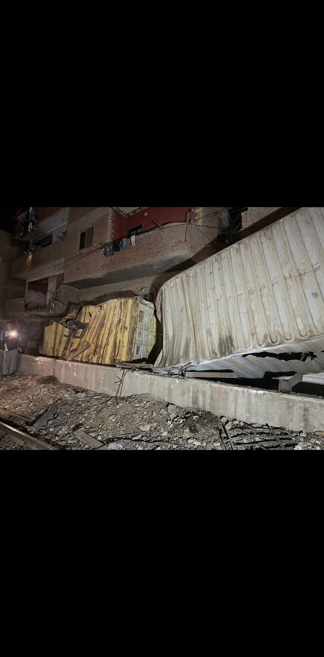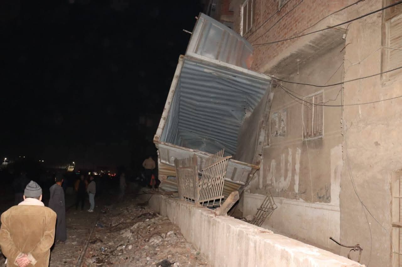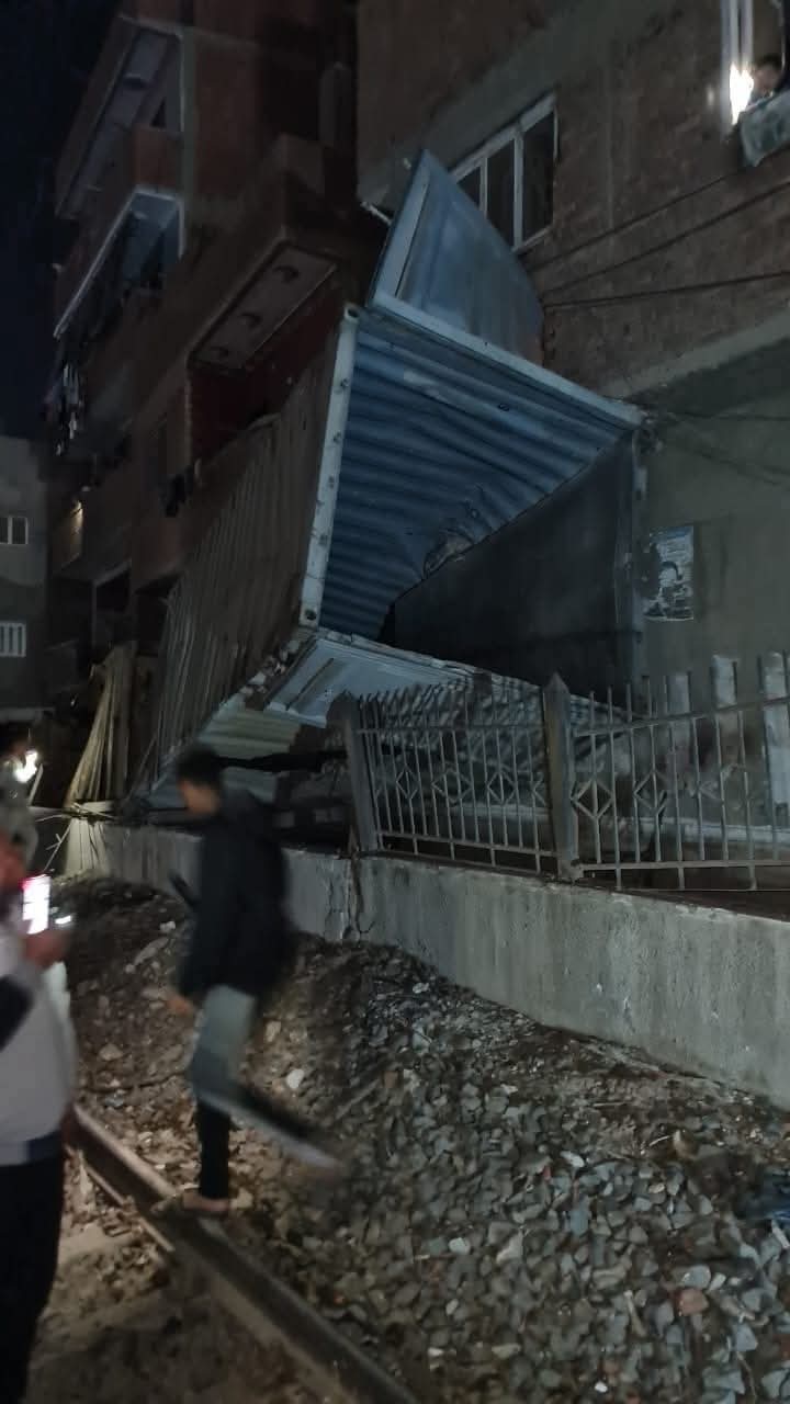 سقوط سبنسة وتناثر حاويات قطار في القليوبية.. والسكك الحديدية تعتذر (صور)