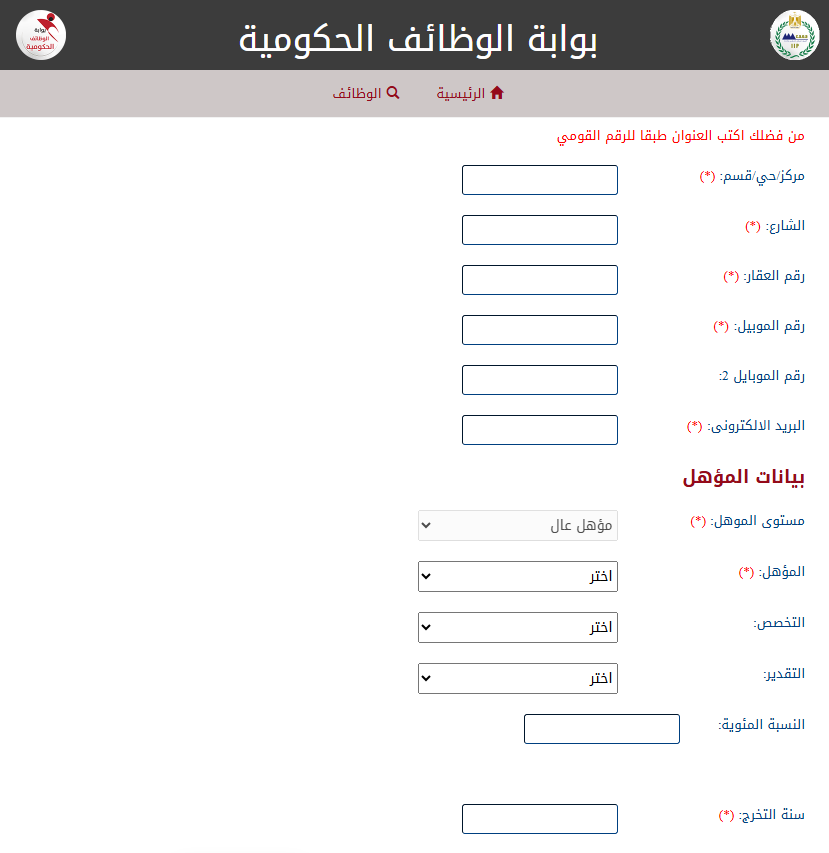 وفي حال تقديم إفادة بالمؤهل، يلزم أن تكون حديثة ومعتمدة وأن يكون موضحاً بها البيانات الأساسية وعلى الأخص الاسم كاملاً والتخصص والتقدير العام والنسبة المئوية وسنة التخرج، وعند الحضور في اليوم المحدد للامتحان الالكتروني يجب احضار اصل المؤهل الدراسي للاطلاع عليه، مشددة على أهمية الاحتفاظ برقم التسجيل الخاص بالمتقدم على الوظيفة بعد إتمام عملية التسجيل.